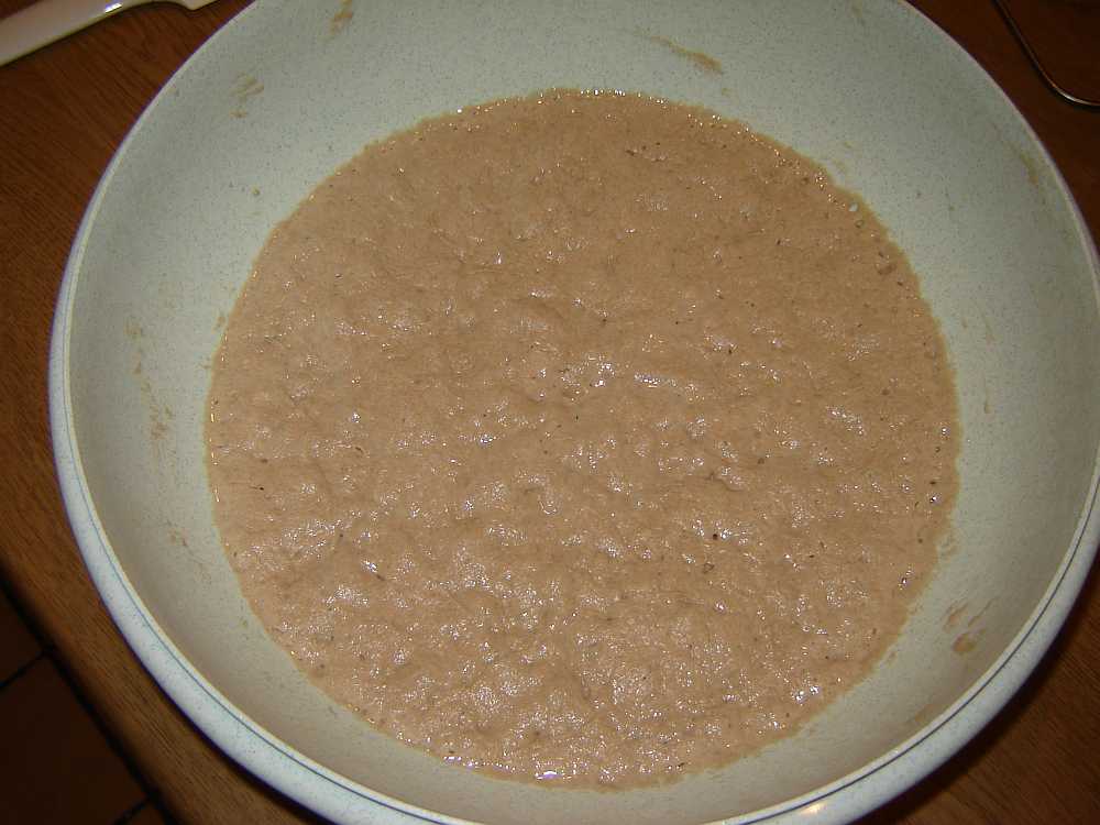 100 g Roggenmehl (Typ 1150 o. ä.) und 100 ml warmes Wasser (40° C) werden in den Ansatz der Stufe 1 eingerührt und abermals für 24 Stunden bei ca. 20° C aufbewahrt.