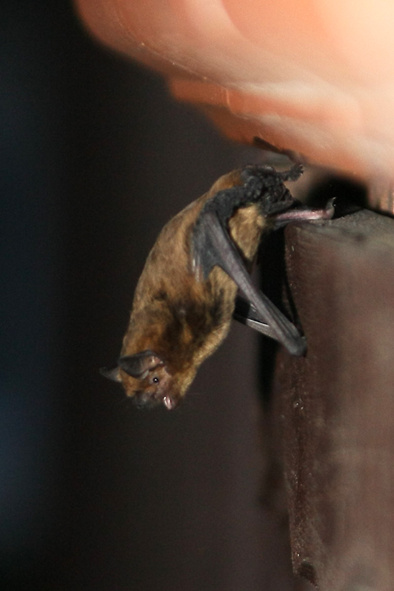 Ich bin mir noch unsicher was es für eine Art ist, es könnte eine Kolonie kleine Abendsegler sein. Sie leben hinter der Holzverkleidung meiner Giebelwand. Ich habe innerhalb von 10 Minuten über 40 Exemplare gezählt die ausgeflogen sind. Die Kolonie ist sicher etwa doppelt so stark.